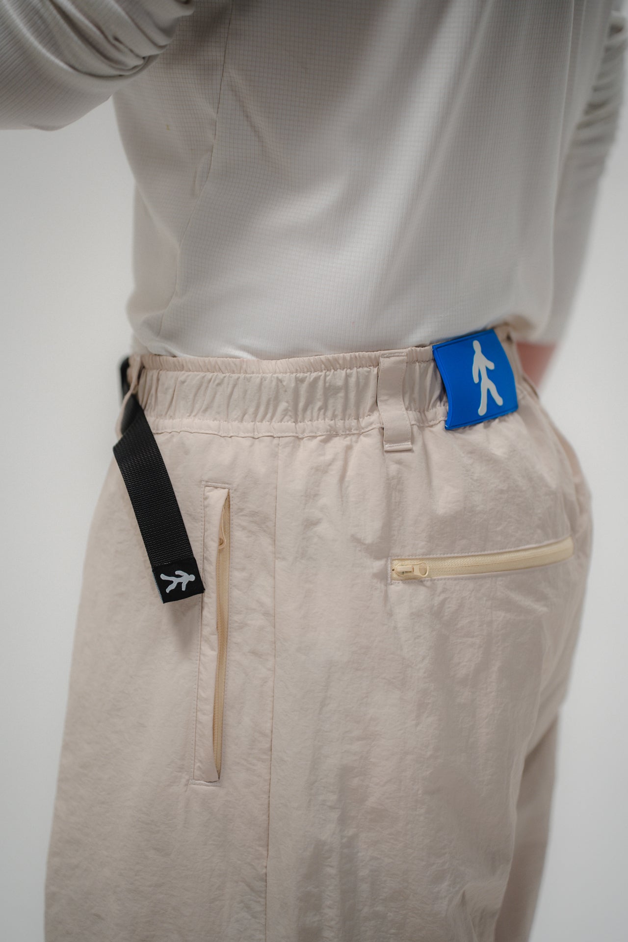A PVC patch in Flea Blue with a white logo is placed on the back left side of the waistband. Discreetly positioned yet clearly eye-catching. The clean and functional design integrates seamlessly into the overall look of the pants.