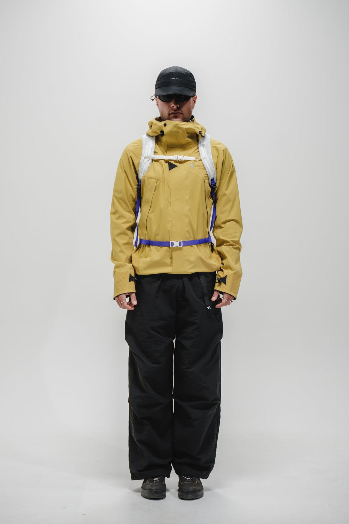 The material is water repellent, breathable and durable. It is perfectly suited for changing weather conditions in outdoor environments.